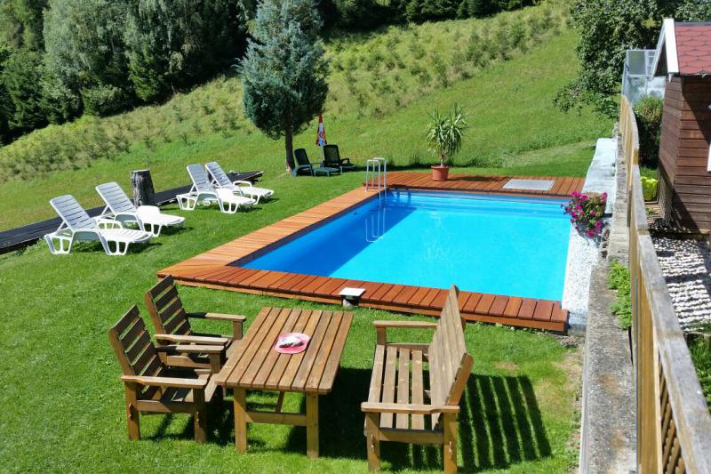 ski resort in the country absolutely quiet position friendly with families reductions for children play ground pets allowed care of pets parking lot